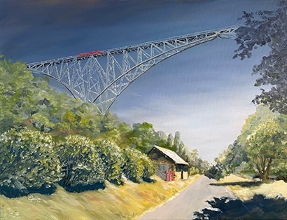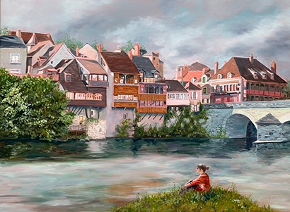 La peinture à l’huile est mon domaine de prédilection. J’aime y explorer la poésie des paysages, urbains ou ruraux.
