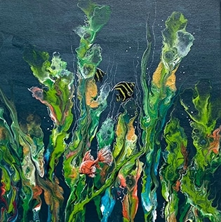 La liberté créative que me donne l’acrylique apporte une autre orientation à mon travail. Elle me permet de jouer avec les couleurs et les formes, à la limite de l’abstraction…pour créer un univers coloré et joyeux.