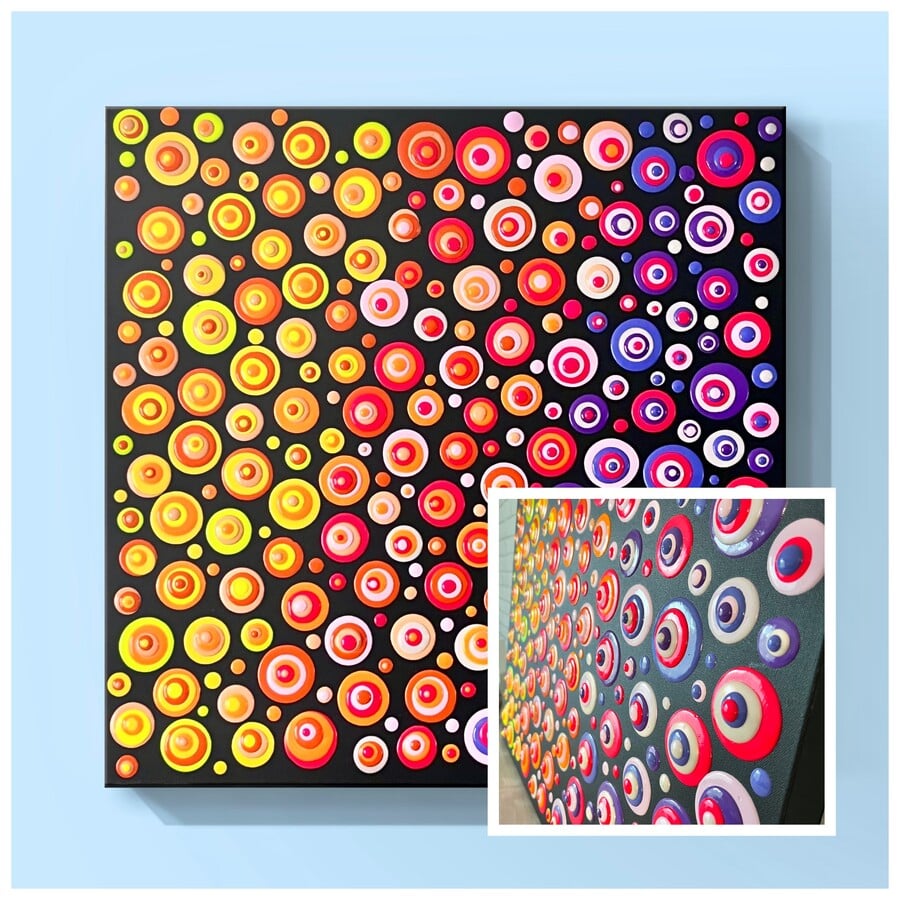 Mes toiles sont au service de la couleur et du geste.Mes créations sont des doses de vitamines à consommer sans modération.Même celles qui expriment la nostalgie sont remplies de positivisme et d’énergie.