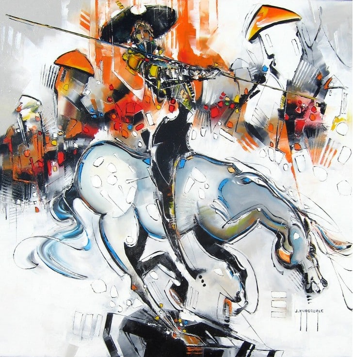 Des couleurs lumineuses et riches, rouges sanguins, filaments de jaune, explosions de blancs ou d’orangés composent ma palette et donnent à mes toiles l’éclat et la chaleur du sud.