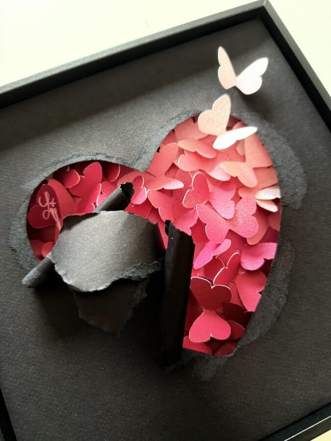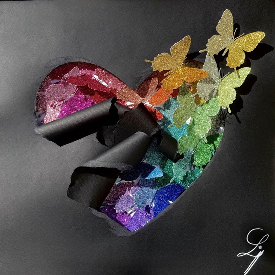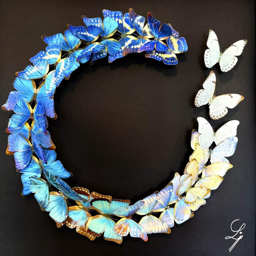Lison Gangloff est une Artiste papier. Son inspiration repose sur une dualité subtile entre réflexion cartésienne et spiritualité naturaliste. Elle est fascinée par la magie esthétique des papillons et leur bouleversante éphémérité. Mais elle s’oblige à créer des reproductions sublimées en papier de ses modèles.