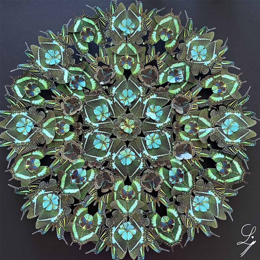 Guidée par son besoin de créer de la beauté et de l’harmonie, Lison architecture des oeuvres uniques. Sa marqueterie entomologique hypnotise notre oeil pour nous offrir une possibilité de recueillement spirituel comme le faisait les vitraux en rosace de nos cathédrales.