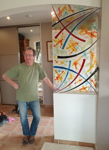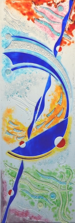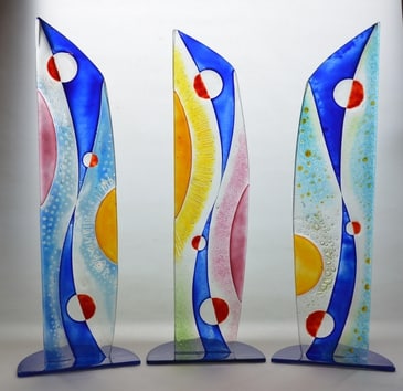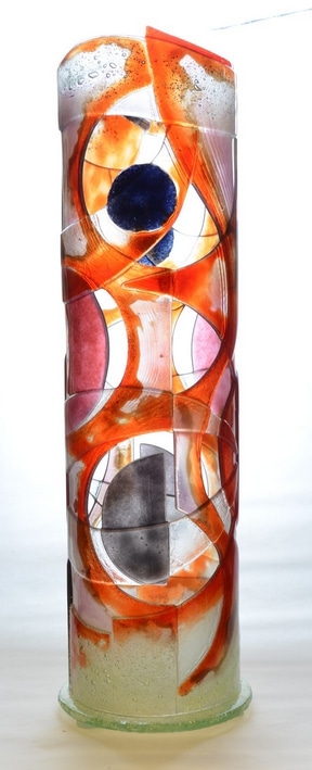 Je travaille le verre fusionné depuis 17 ans. Une matière fascinante, dure et douce, à l’éclat exceptionnel. J’aime improviser, travailler sur différentes thématiques entre abstraction et figuratif avec toujours cet objectif principal de trouver une harmonie entre formes et couleurs.