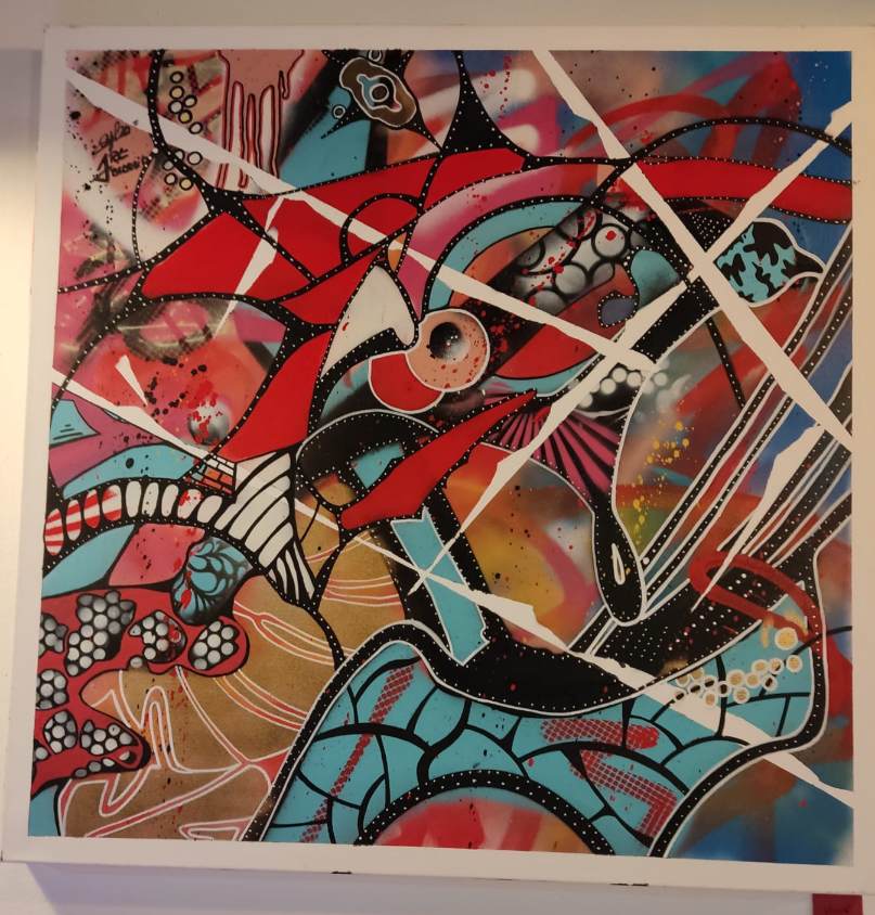 L’utilisation de techniques comme les bombes aérosols, le posca et l’acrylique me permet de créer des œuvres à la fois audacieuses et spontanées. La spontanéité de mon approche suggère un processus créatif libre où chaque coup de pinceau ou de spray devient une partie intégrante de l’oeuvre finale.